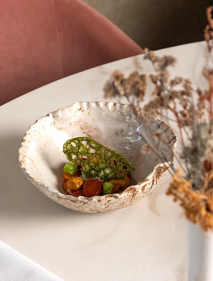 Our tasting menu recreates A Day in the Madrid Sierra, unfolding through different chapters that take you on a journey — from breakfast in the countryside to dinner at nightfall.